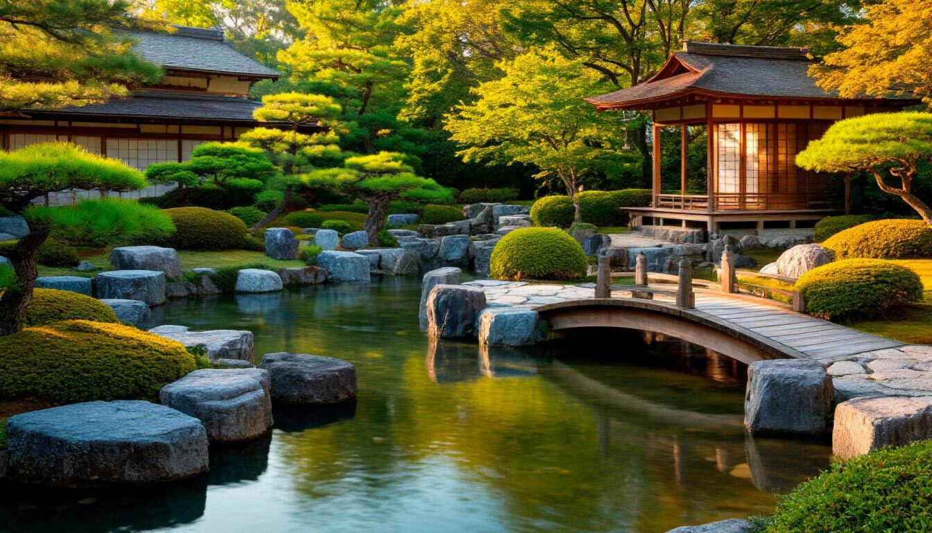 Основные характеристики японского сада включают использование природных материалов и элементов ландшафта, среди которых наиболее значимы камни, водоёмы, мостики через ручьи и небольшие деревья. Эти элементы символизируют разные природные стихии, гармонично сочетаясь друг с другом и создавая атмосферу уединения и созерцания.